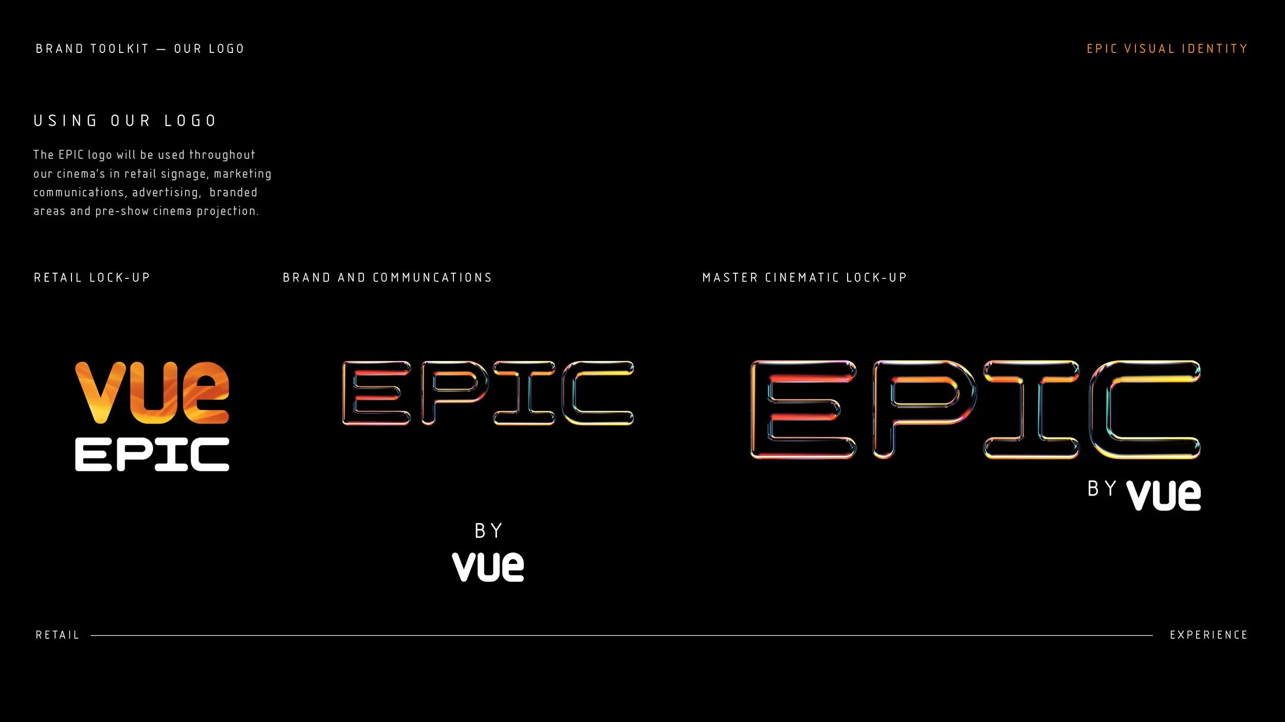 EPIC by VUE brand identity for their new cinema offering largest screen.